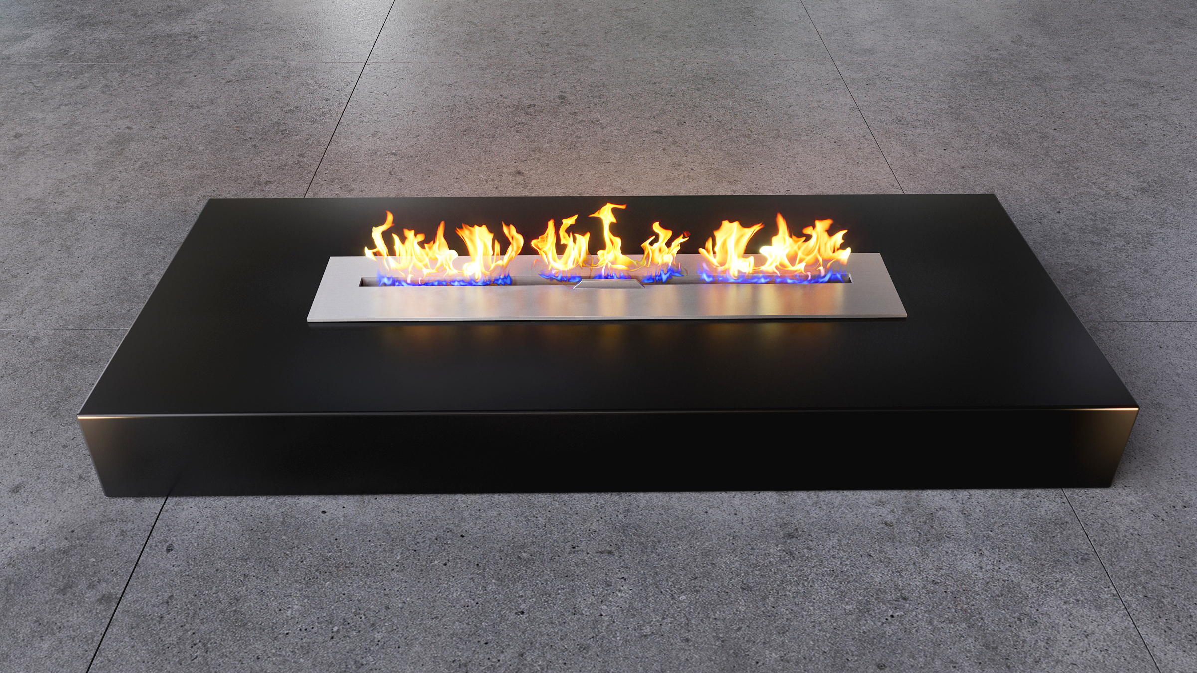 Lareira ecológica a etanol com dois queimadores, ideal para ambientes maiores com design sofisticado.
